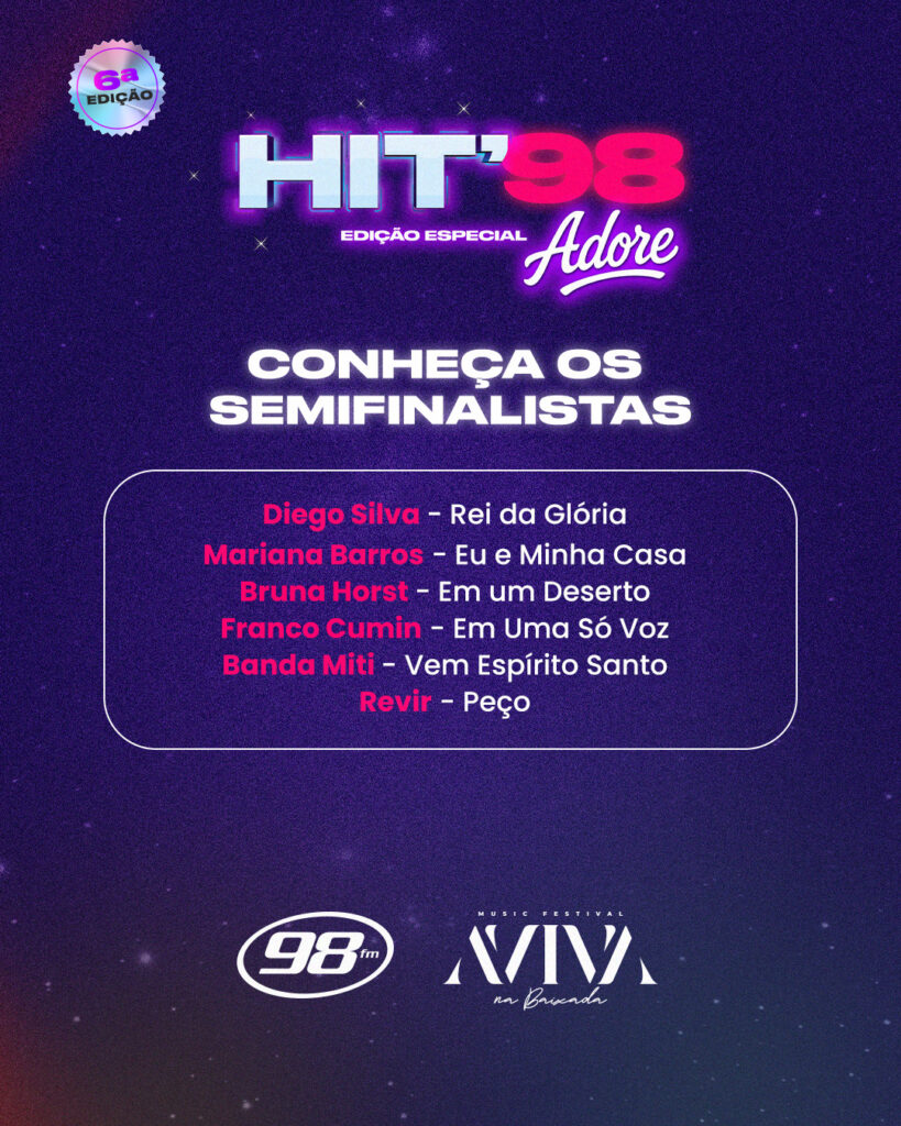 Após seis eliminatórias e mais de 310 mil votos, o concurso cultural HIT 98 – Edição Especial Adore chegou em sua Semifinal!